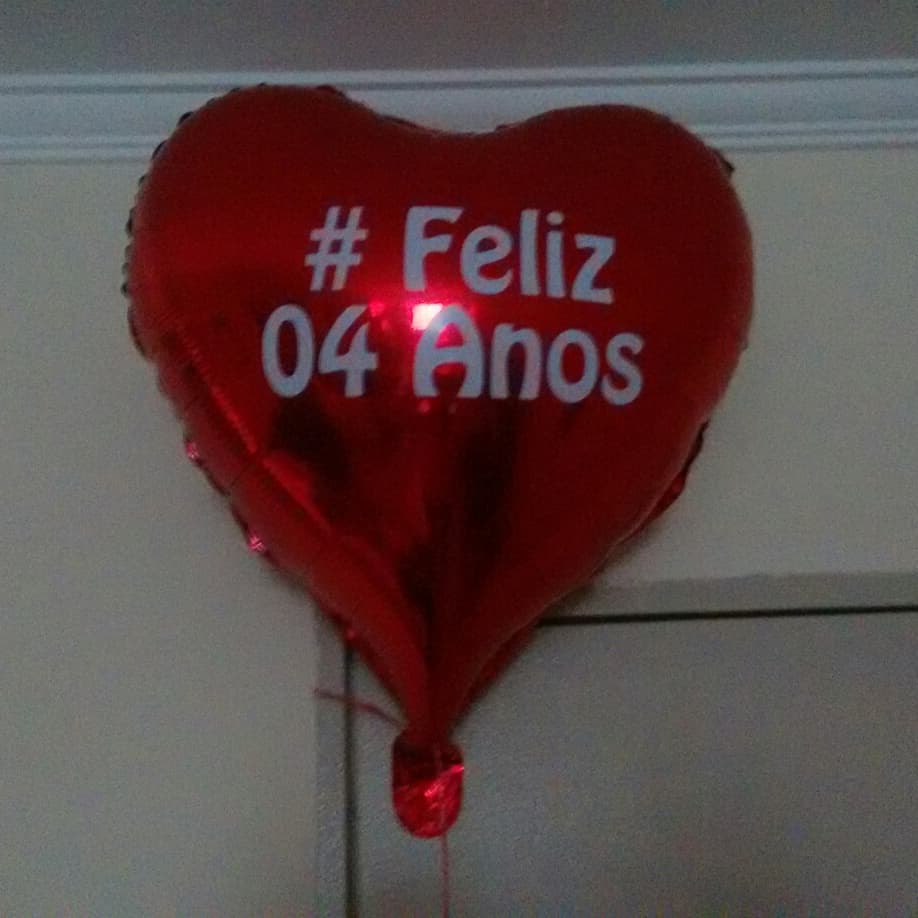 Um balão em formato de coração personalizado de um lado cheio no gas helio com fitilho na cor.